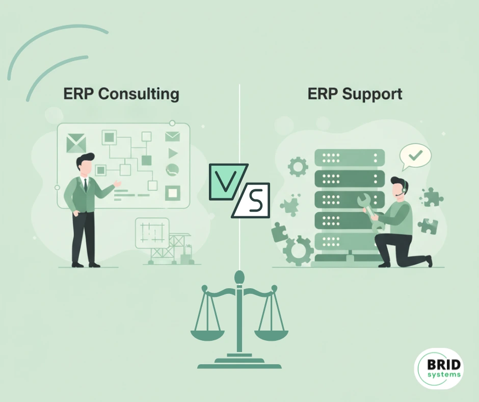 ในโลกของการวางแผนทรัพยากรองค์กร หรือ ERP (Enterprise Resource Planning) นั้น คำว่า ที่ปรึกษา (Consulting) และ บริการหลังการขาย (Support) เป็นสองบทบาทสำคัญที่มีความแตกต่างกันอย่างชัดเจน แต่หลายคนมักสับสน บทความนี้จะช่วยไขข้อข้องใจและชี้ให้เห็นถึงความแตกต่างหลักของทั้งสองฟังก์ชัน เพื่อให้องค์กรสามารถเลือกใช้บริการได้อย่างเหมาะสม